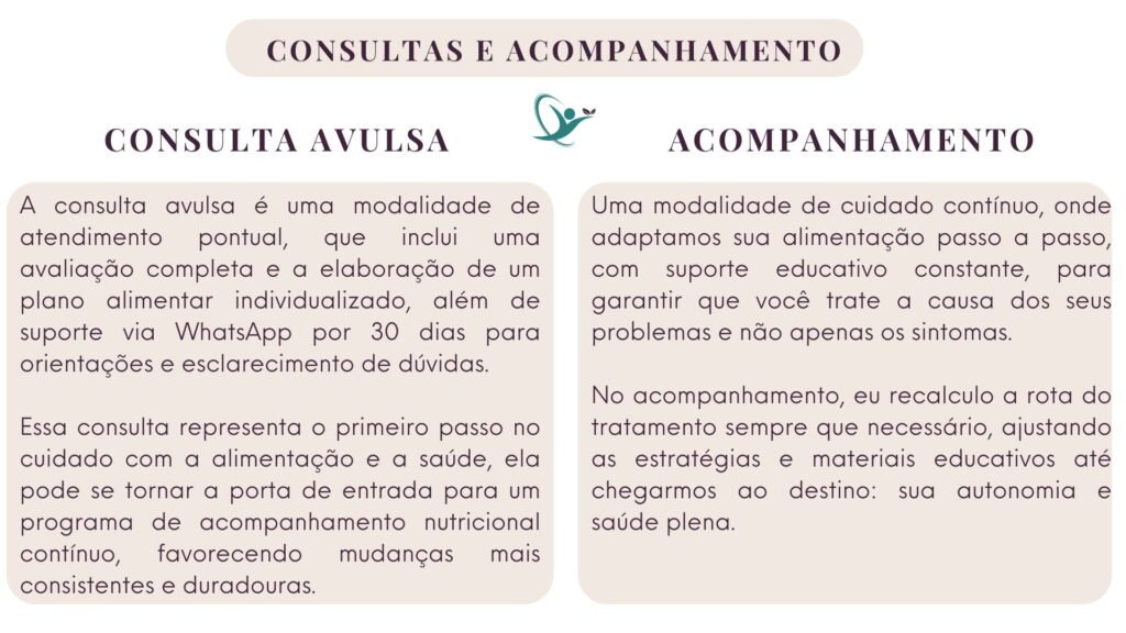 O acompanhamento é conduzido de forma acolhedora e individualizada, respeitando a história, a rotina e o momento de cada pessoa. O objetivo é promover mudanças conscientes e possíveis de manter no longo prazo, fortalecendo a autonomia alimentar e construindo uma relação mais equilibrada, saudável e tranquila com a alimentação.